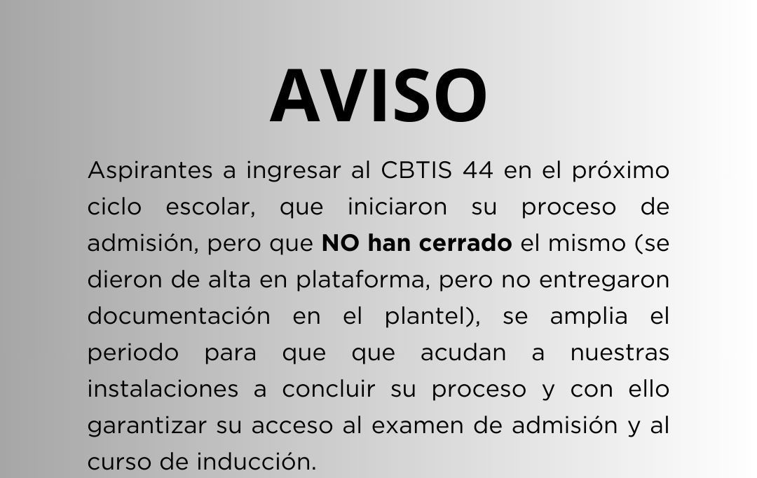 Se informa a los aspirantes que realizaron su registro de ficha en plataforma y no concluyeron su proceso, acudan al plantel de 09:00 a 14:00 del 06 al 16 de mayo para validar su ficha que les dará derecho a presentar su examen de admisión.